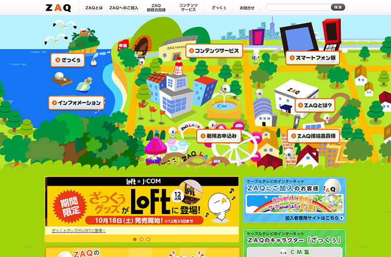 ケーブルテレビ(CATV)のインターネット接続サービス「ZAQ(ザック)」は、マカフィーforZAQ(ザック)などセキュリティツールが充実。ZAQのキャラクター「ざっくぅ」のコンテンツやかわいいざっくぅキャラクターグッズ販売、TVCM動画もご紹介。
